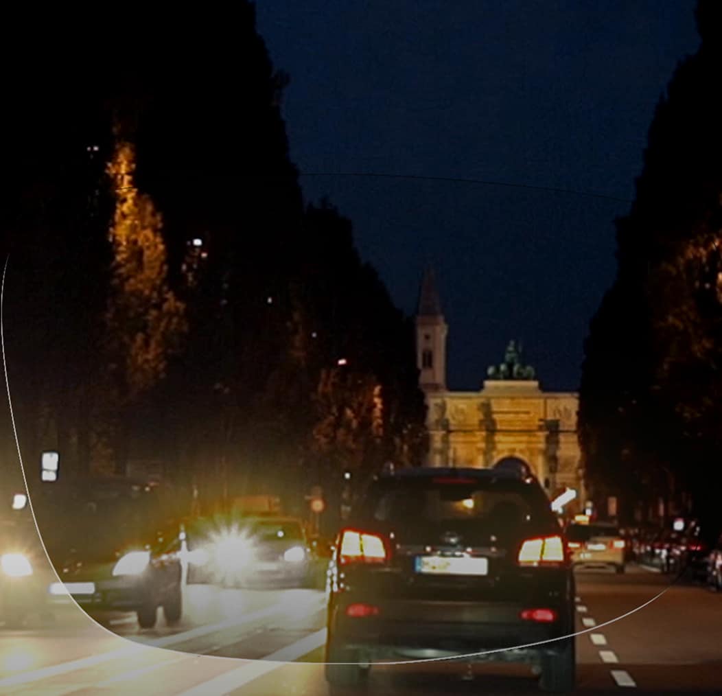 Die Gläser der Nachtsichtbrille filtern helles und grelles Licht. Mit unseren Gläsern von Zeiss und anderen Qualitäts-Markengläsern sehen Sie nachts besser!